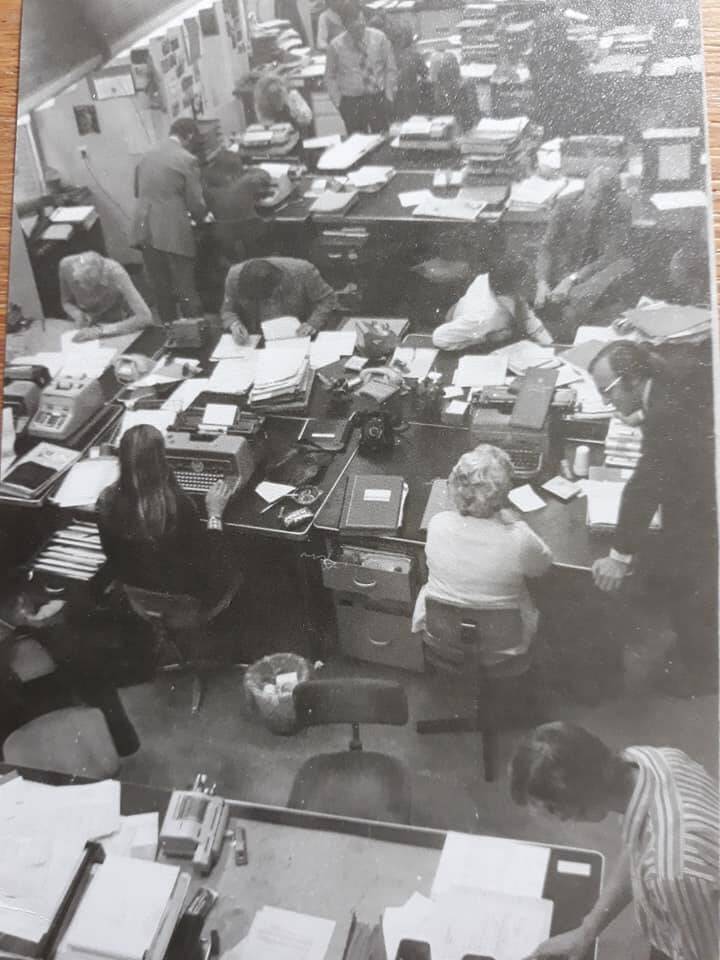 Er stonden voor zover ik het me herinner maar liefst 6 bureaus bij elkaar. Drie waren er voor de verkoop en meteen ernaast zaten de inkopers voor de contacten met de fabrieken in binnen- en buitenland. Meestal toch wel in het binnenland want elke kartonfabriek had een vertegenwoordiging in Nederland. Feldmühle zat in Amsterdam, Iggesund had een kantoor ergens in de provincie. Het was heel handig om in- en verkoop zo dicht bij elkaar te hebben, de lijnen waren strikt gescheiden maar wel lekker kort.
